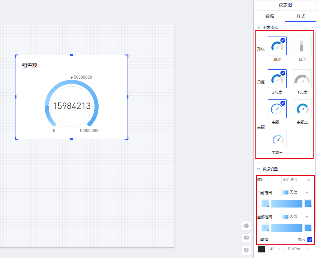 (3)您还可以设置数值及刻度的字体大小,支持对仪表图的刻度进行细节修改。
