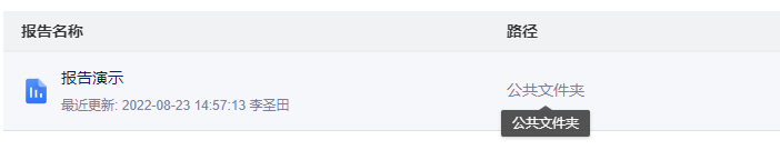 - 分享给他人协同编辑。如果您的伙伴同样是“创作者”并都在同一个项目中(请参见角色管理),您可将报告保存路径设置在[公共文件夹],这样他就可以访问并编辑您的报告了。