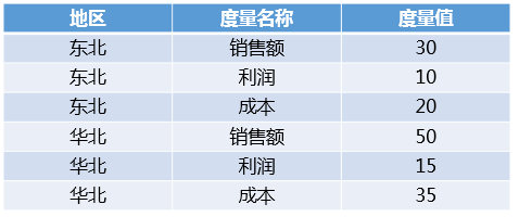 “度量名称”和“度量值”是系统生成的字段,在用户的原始数据中并不存在。其中“度量名称”是字符串类型,存储的是数据表中所有度量的名称,而度量值则是每个度量对应的取值。