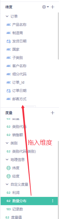(3)再将“数量分布”字段拖入到维度列表;