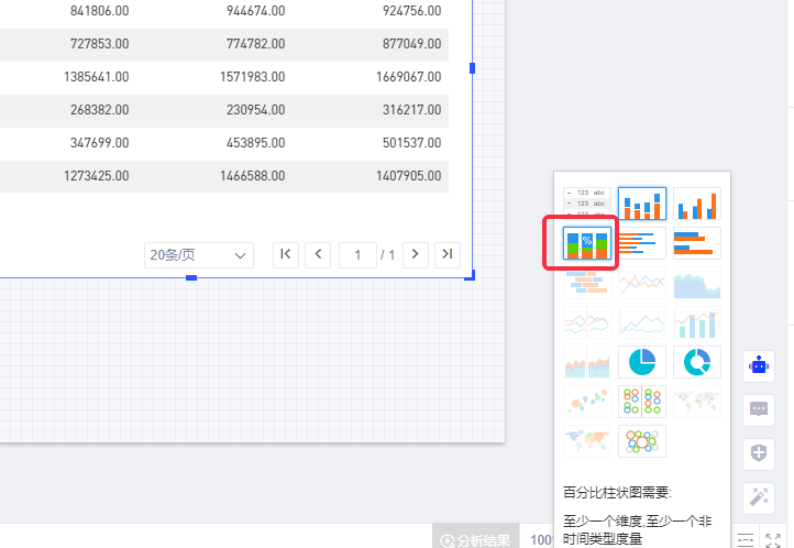 接上文关于堆叠柱状图的操作,在属性面板上选择“并列柱状图”,即完成图形切换。