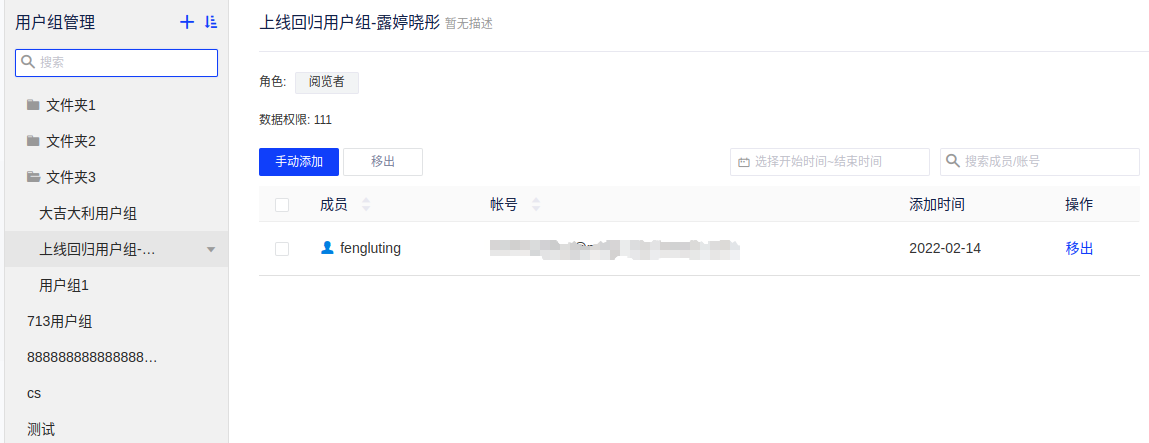 在用户组管理模块内,您可以管理项目内的用户组,将多个用户添加进一个用户组并对用户组配置角色。