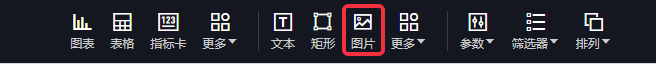 1. 概述2. 快速入门1. 概述图片控件可以帮助您在报告中添加图片元素,展示图片。 2. 快速入门(1)点选顶部的图片控件后,系统会自动弹出选择框,让您选择需要上传的图片; 支持的图片类型:gif、jpg、jpeg、bmp、png。 图片大小:单个文件大小在10M以内。 (2)上传完成后,您可任意调整图片大小,在右侧的图片设置面板中,可设置保持宽高比(默认勾选)、更改图片的边框、圆角大小等; (3)在右侧的图片设置面板中,点击“创建链接”按钮可设置图片的链接,支持网页、报告页、自定义JSON三种链接类型。