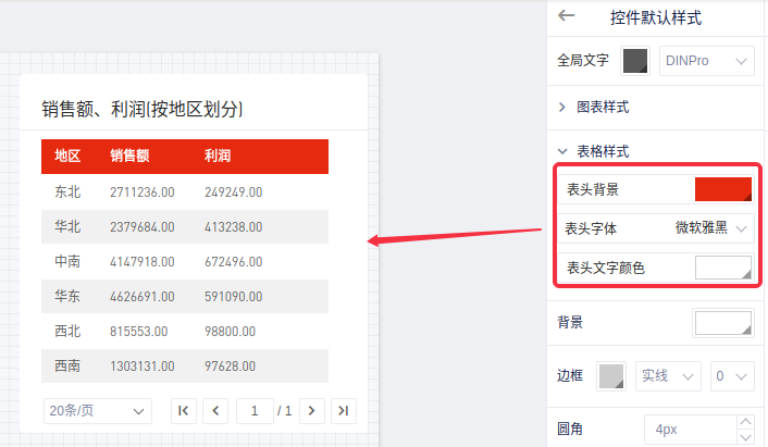 (3)表格样式,可设置表头背景、字体和文字颜色;