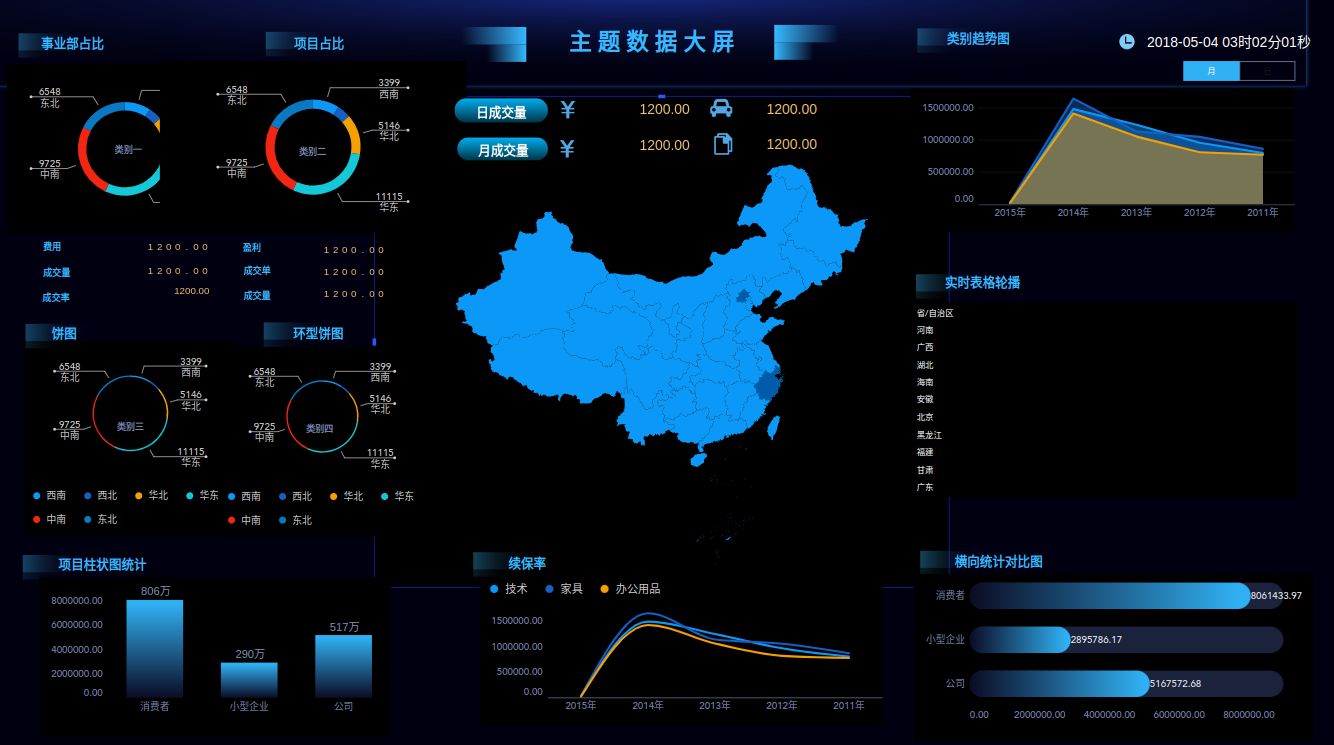 数据大屏同时也是一种信息管理工具,可用于跟踪与业务、部门或特定流程相关的KPI、指标和关键数据点。