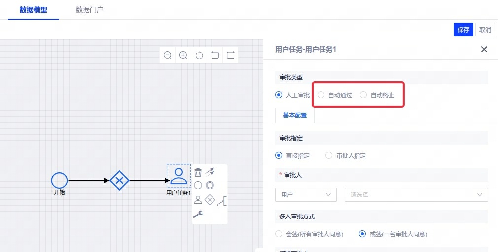 4、审批管理:数据模型在添加网关条件时,可配置发起人是资源创建人分支;
