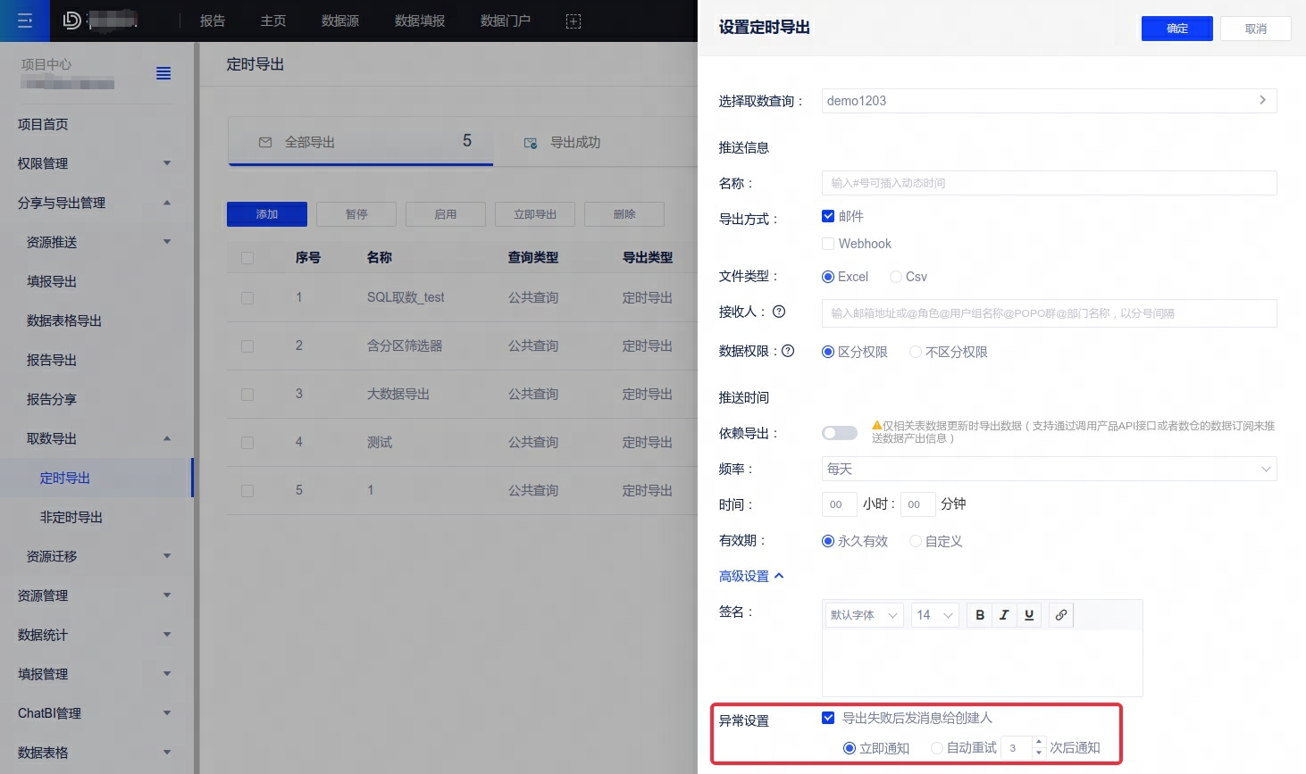 【导出增强】定时导出配置新增导出失败,方便管理员在导出失败时及时收到通知。