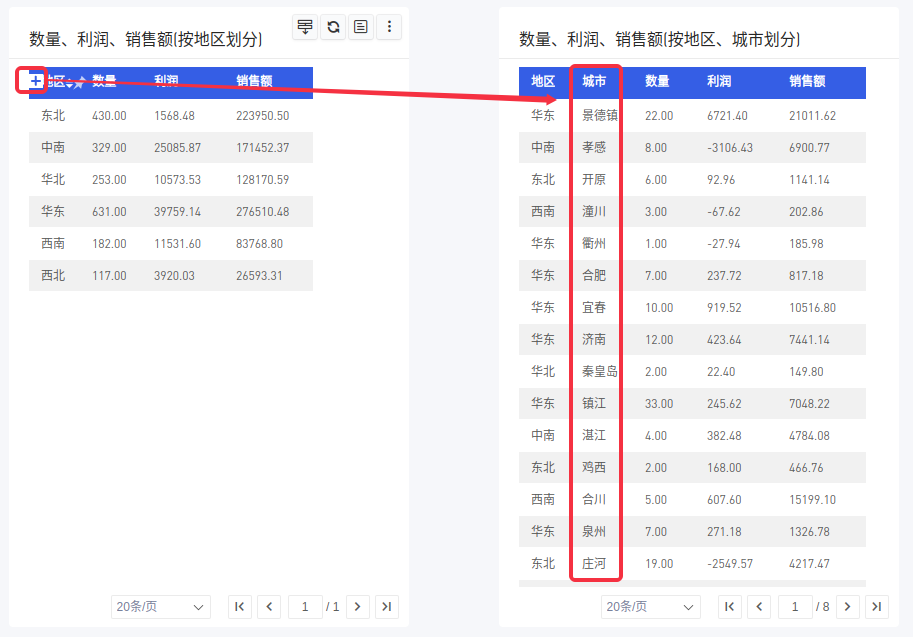 当交叉表、图表组件内拖入动态维度,并在动态维度内拖入日期类型字段时,日期维度支持年月日等多种日期类型,实现年月日的时间维度分析。