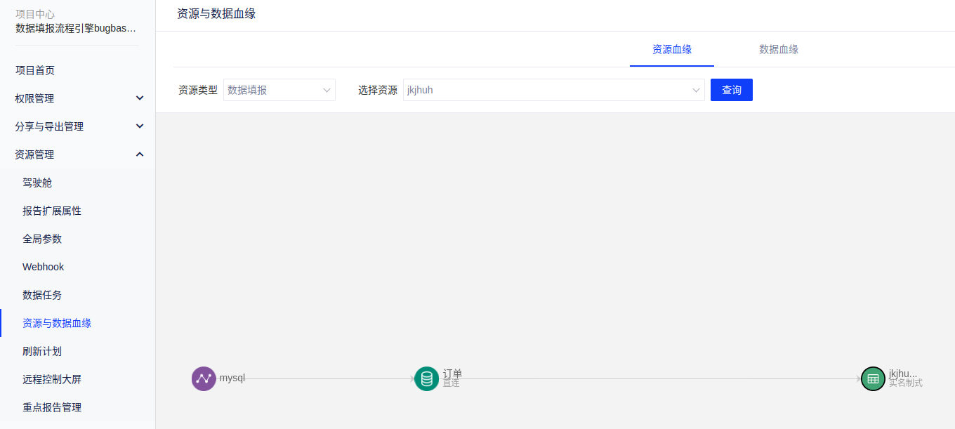 当制式表单引用数据模型时,可以通过资源血缘视图查看到。