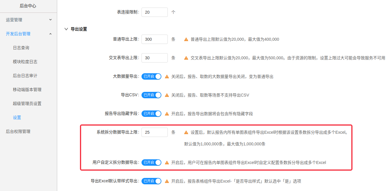 当明细数据,台账数据等在数据量较大时,可使用分包导出功能。