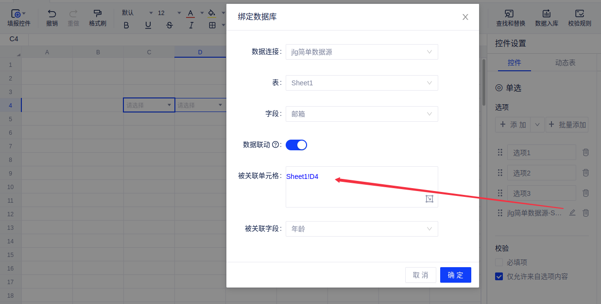 (3)对于整数、小数、字符串类型的报告参数,当可选范围为“列表”时,支持选择“动态值”或“静态值”,选择“动态值”时,可以设置绑定字段;