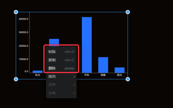 组件排列,对于一个及以上组件,支持置于顶层、置于底层、上移一层、下移一层。