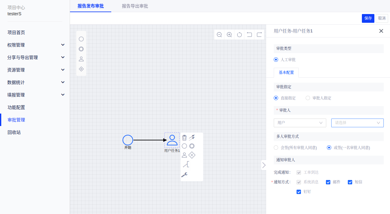 (1)在项目中心-审批管理,管理员先创建报告导出审批流程。