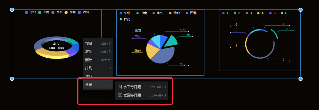 组件分布,对于三个及以上组件,支持水平等间距、垂直等间距。