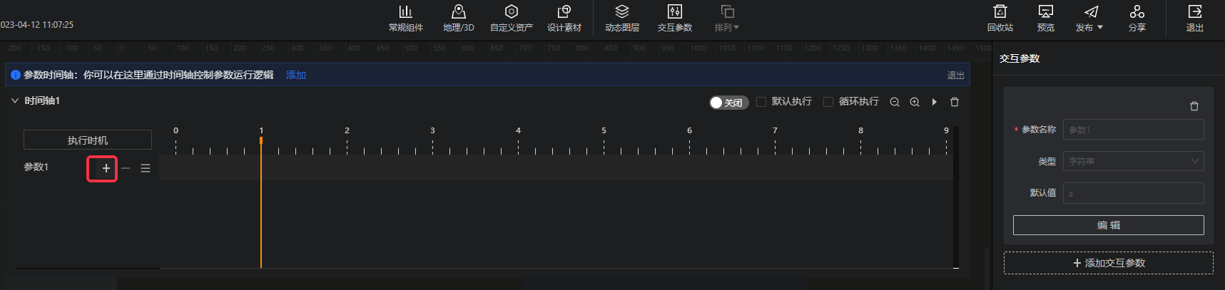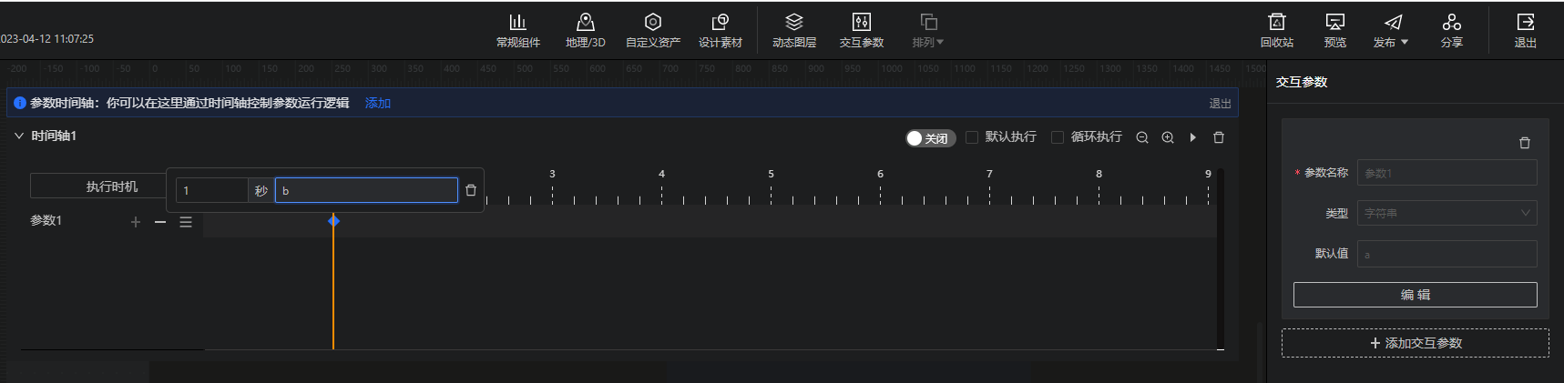 2.11 支持设置参数时间轴,控制参数的时序变化,以实现按顺序自动执行多个大屏交互动作的场景