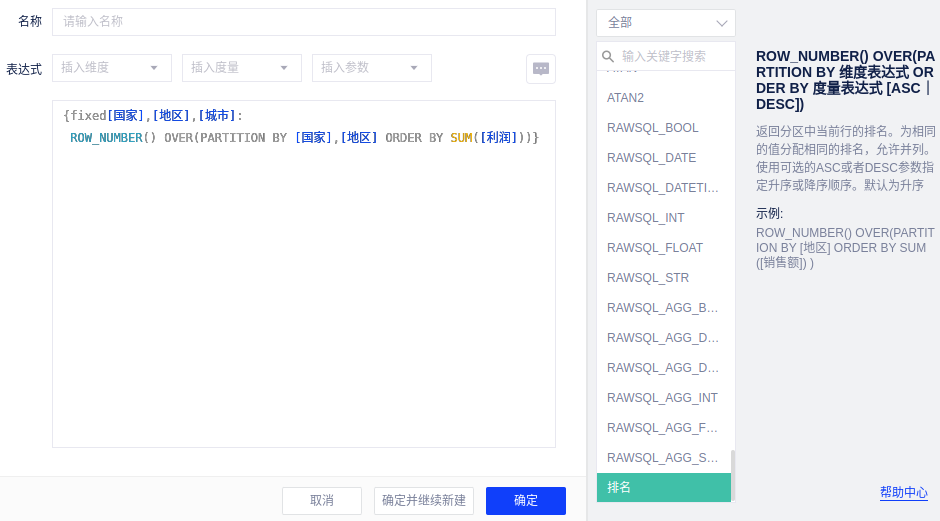 计算字段新增Row_Number排名函数,并支持跟LOD函数结合使用,以实现将排名结果作为维度字段并进行后续分析——比如将排名前5名之外的维度成员归为“其他”。