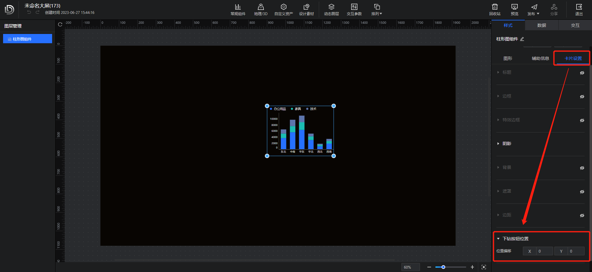 (8)图表的上卷下钻icon支持设置位置偏移