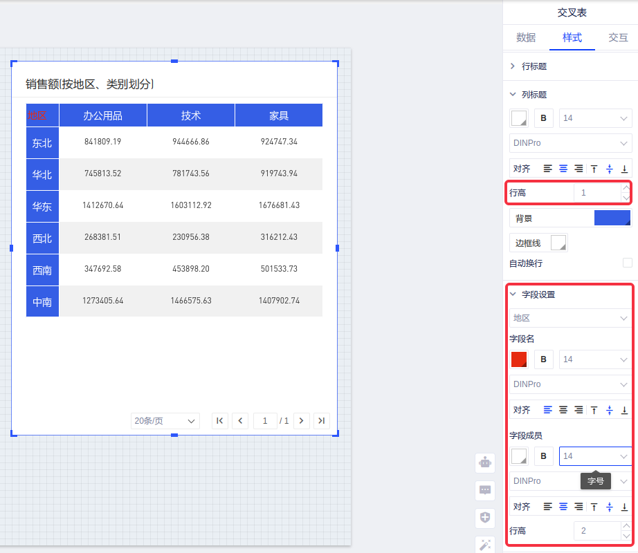 (2)交叉表:支持设置行高;列标题支持字段级别样式设置;支持导出时携带以上样式