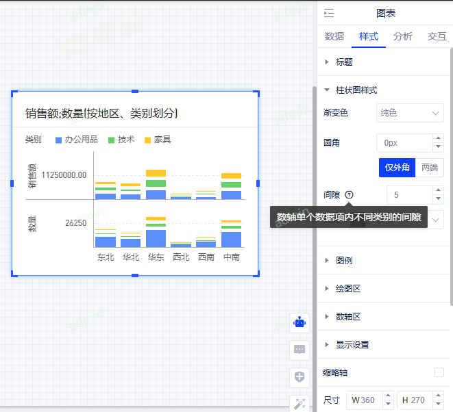 【优化】报告图表样式中柱状图样式的间隙名称优化,增加提示说明,便于理解其含义。