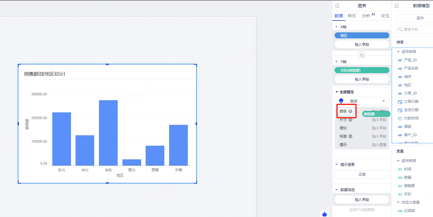 【交互优化】图表将字段拖入属性面板时,增加高亮提示,清楚字段拖入位置。
