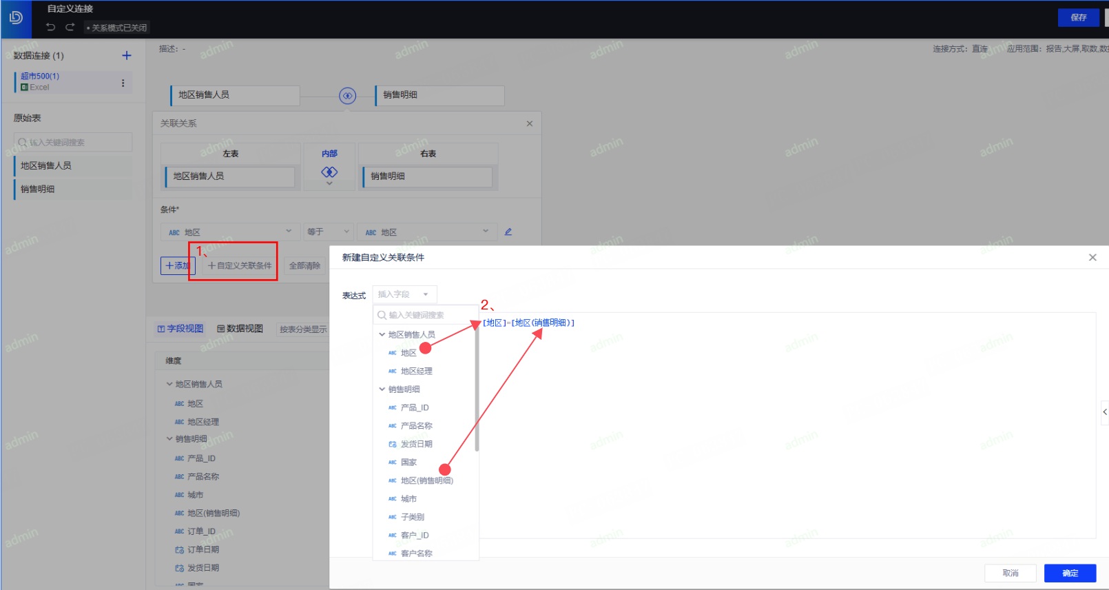 【新增】数据模型中表关联支持创建自定义字段方式进行关联,可先筛选再关联,提升查询性能。具体的操作可查看自定义关联条件。