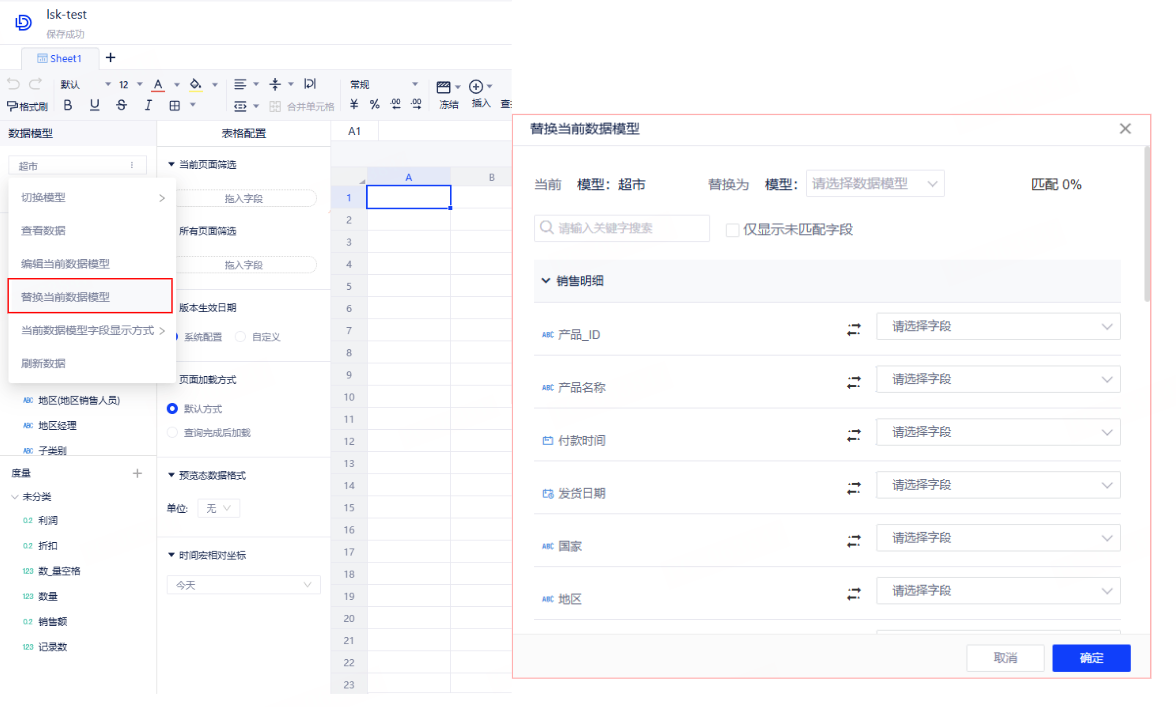 【新增】数据表格支持替换数据模型,可快速替换模型,复用表格。