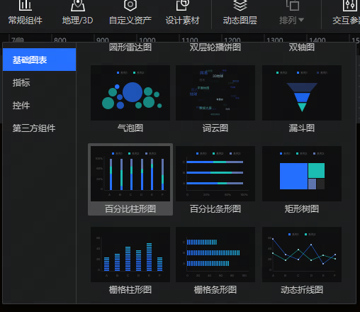 百分比柱形图的样式与柱形图的样式相近,设置过程可参考柱形图。