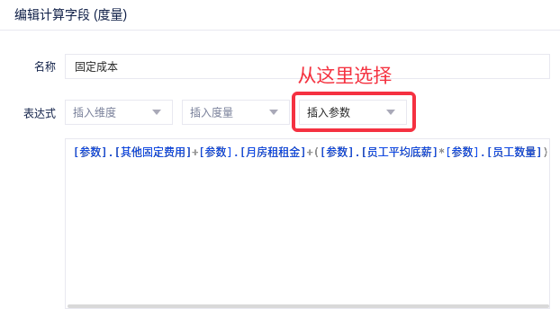 表达式:[参数].[月销售额]-[总成本]