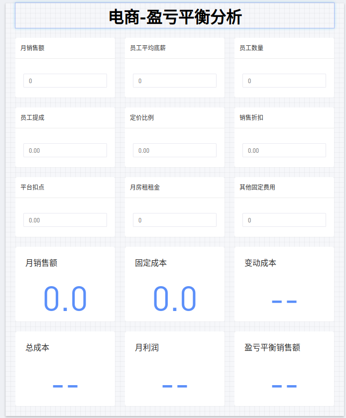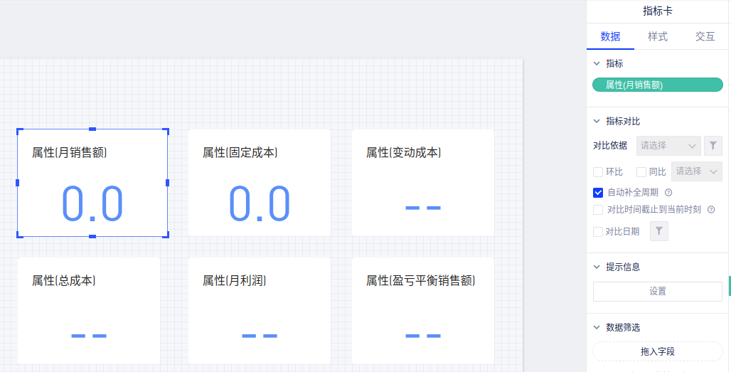 (2)同理制作其他指标卡:「变动成本」、「总成本」、「月利润」、「月销售额」、「盈亏平衡销售额」;