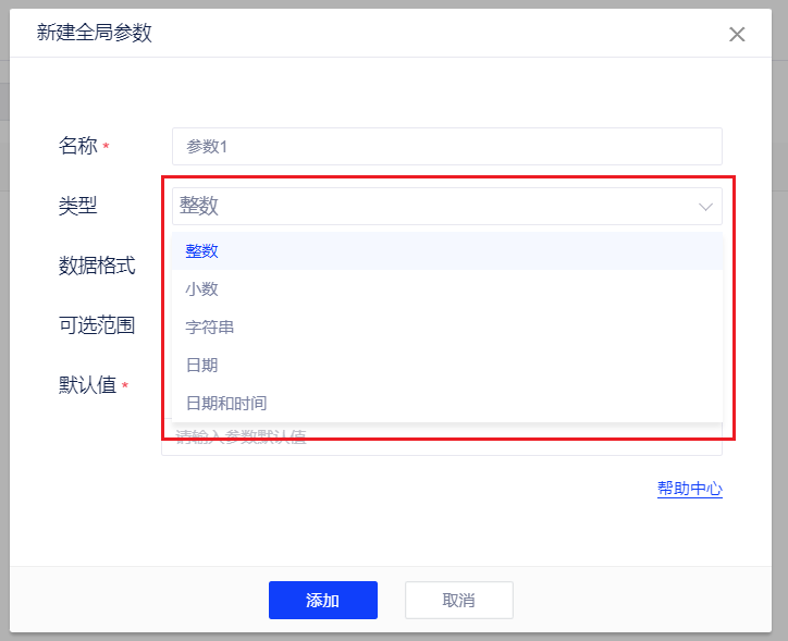 类型:支持整数、小数、字符串、日期以及日期和时间。