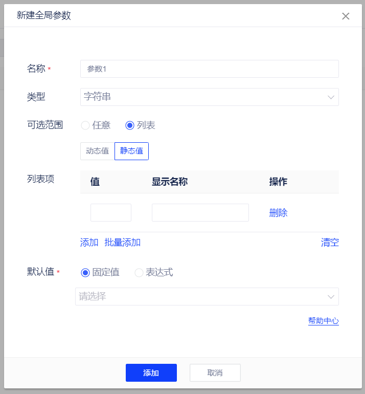 默认值:对于整数、小数以及字符串可配置默认值,默认值可以是固定值或表达式。
