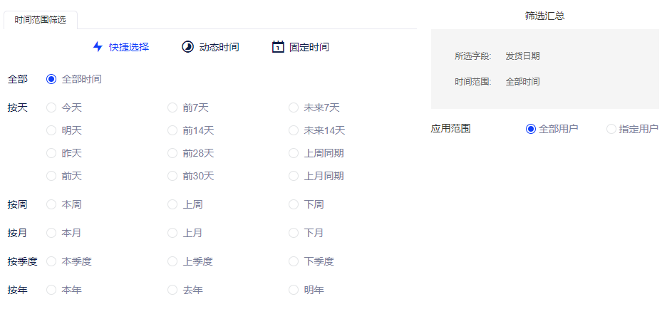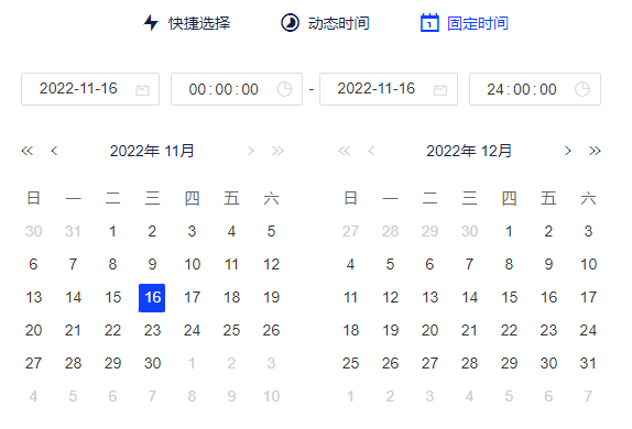 快捷选择,汇总了一些常用时间设置,方便快速选择;