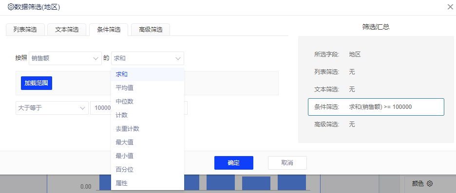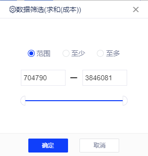 范围:可以设定筛选的数值范围。数值范围只能输入在默认数值范围内的值(点击加载范围获取);