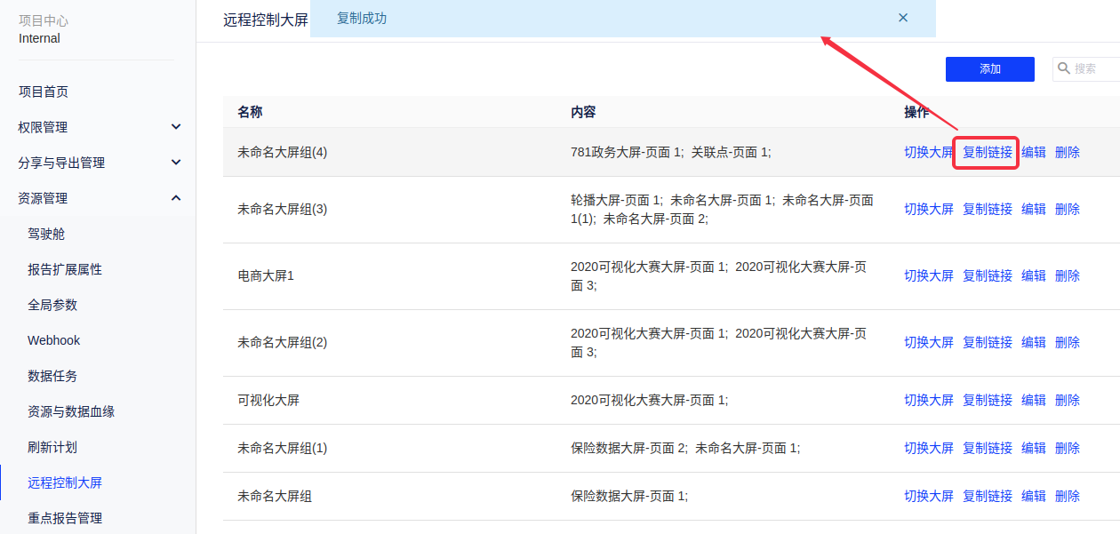 (3)复制设置好的远程控制大屏的链接,并在远程设备上打开该链接投放;