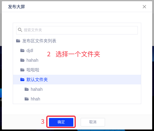 (2)选择发布大屏的存放位置,点击确定后完成发布。