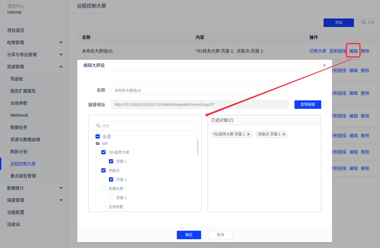 (2)编辑需要更新的大屏;