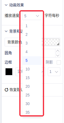 (4)在控制区动画效果中设定滚动速度,数值越高,滚动速度越快。