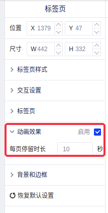③动画效果是指在展示的时候,tab在每个标签页自动停留的时间长度。
