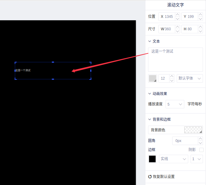 (2)拖动或者在控制区更改滚动文字框背景颜色、大小、位置、边框、圆角等