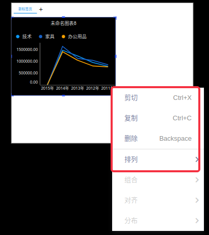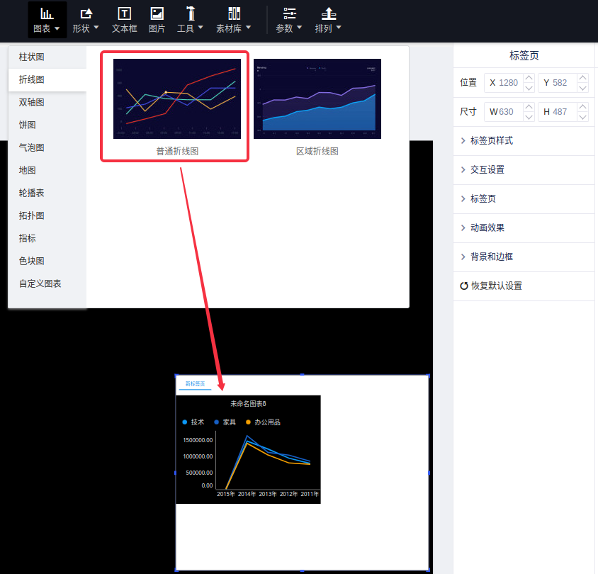 (4)您也可以直接在Tab控件内创建图表,在Tab控件的编辑状态下(双击Tab控件进入编辑状态),点击图表控件添加图表,会直接将图表添加在Tab控件里面;