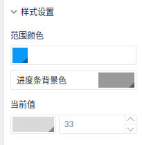 - 样式设置:设置仪表图外圈的每一个范围的颜色、内部进度条的背景颜色和仪表图内的数字的颜色;