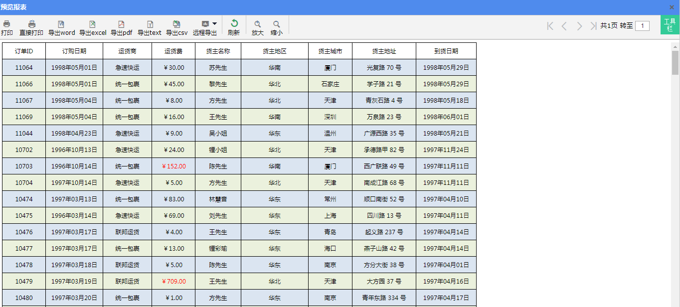 如下图所示,单双行显示不同的背景色,双数行背景色为浅蓝色,单数行背景色为浅绿色。