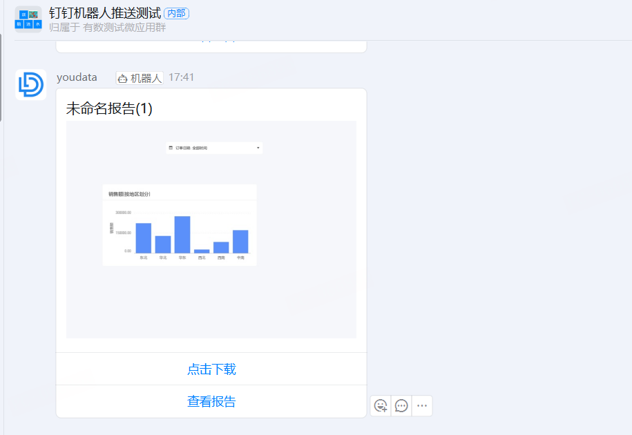 若您需要将报告数据推送至钉钉群,您可以使用机器人配置,将数据推送至钉钉群中。