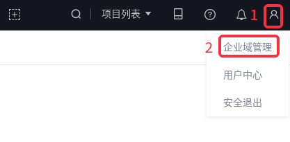 点击右上角头像icon,然后在下拉菜单中选择企业域管理(或平台管理),即可进入企业域管理页面。本文将介绍域管理的操作内容。