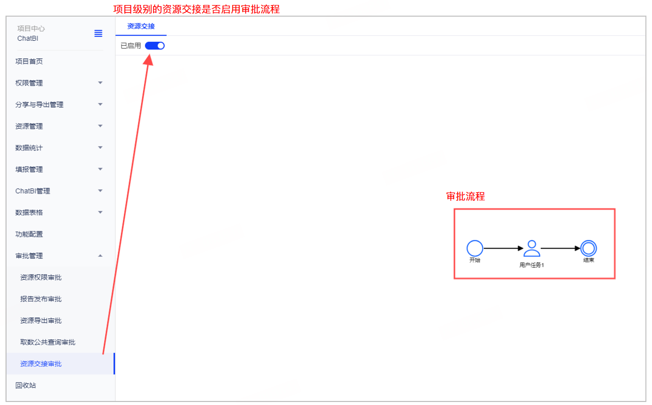 如果是资源转接操作方是普通用户,项目管理员可设置审批流程。