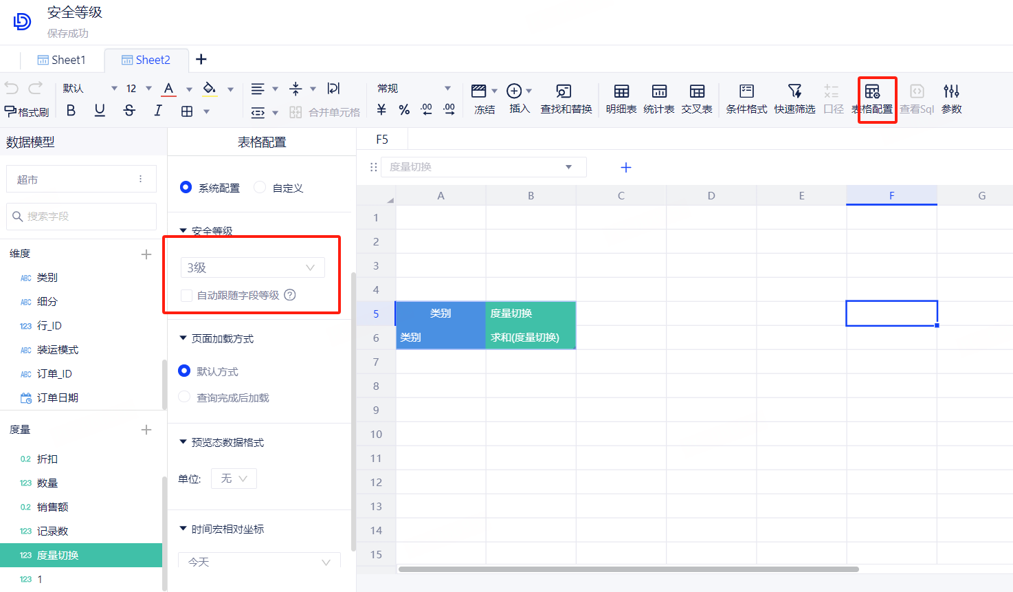 注意:用户等级需同时大于字段等级和报表等级才能看到表格数据。