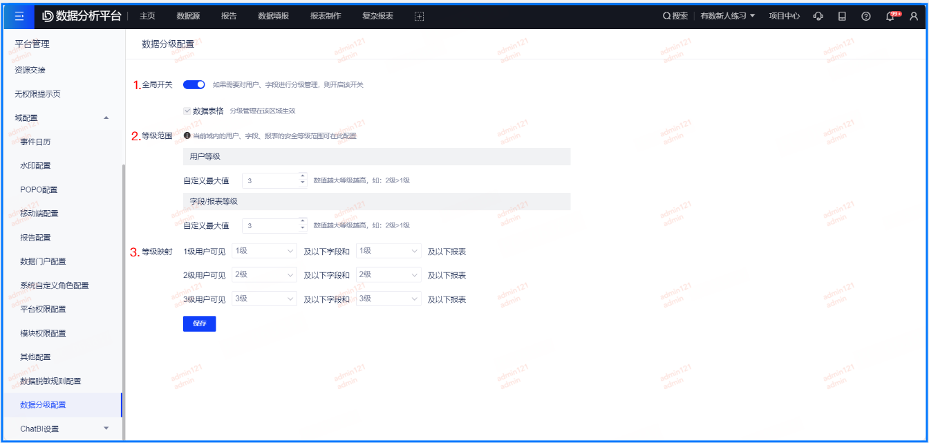 (3)等级映射:设置某个等级用户可见某个等级及以下的字段或报表。