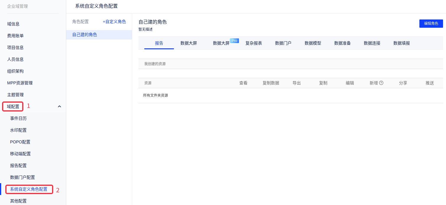 - 步骤一:以域管理员或域主身份进入【平台管理】-【域配置】-【平台权限配置】,添加一个权限集