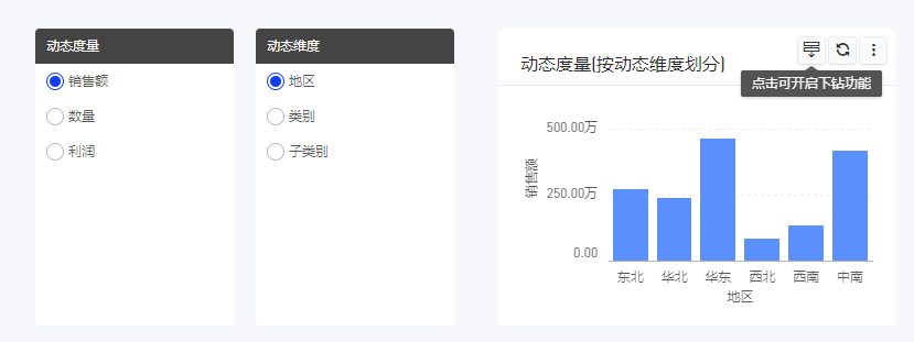 新增动态维度/动态度量功能,更加简单快速地实现多维度或多指标的切换,以满足不同用户的需求。