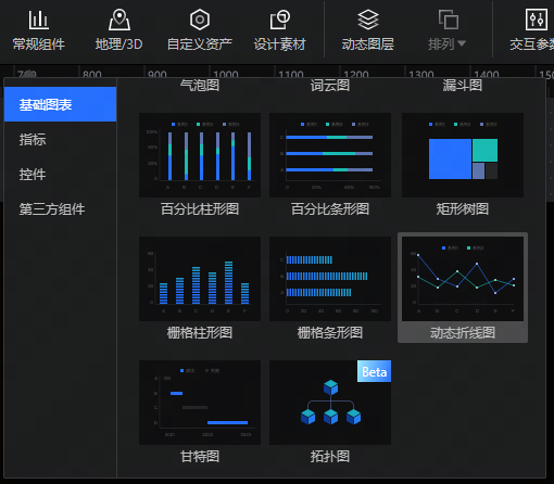 在编辑状态下点击动态折线图组件即可对其进行配置,配置内容分为样式、数据和交互三个Tab。(本节仅介绍动态折线图特有属性的配置,基础图表共性的配置请参考下文“组件配置”)